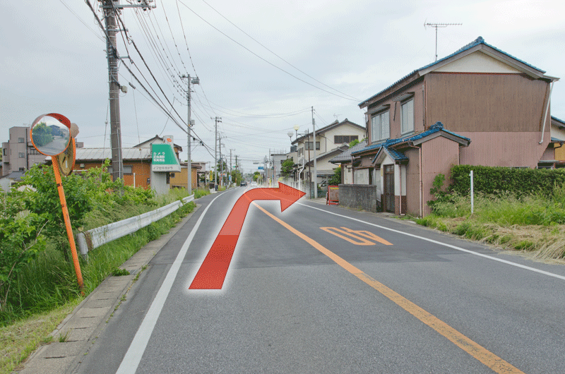 可能であれば左折をしてご入庫をおすすめします。後続車に注意をしつつご入庫ください。